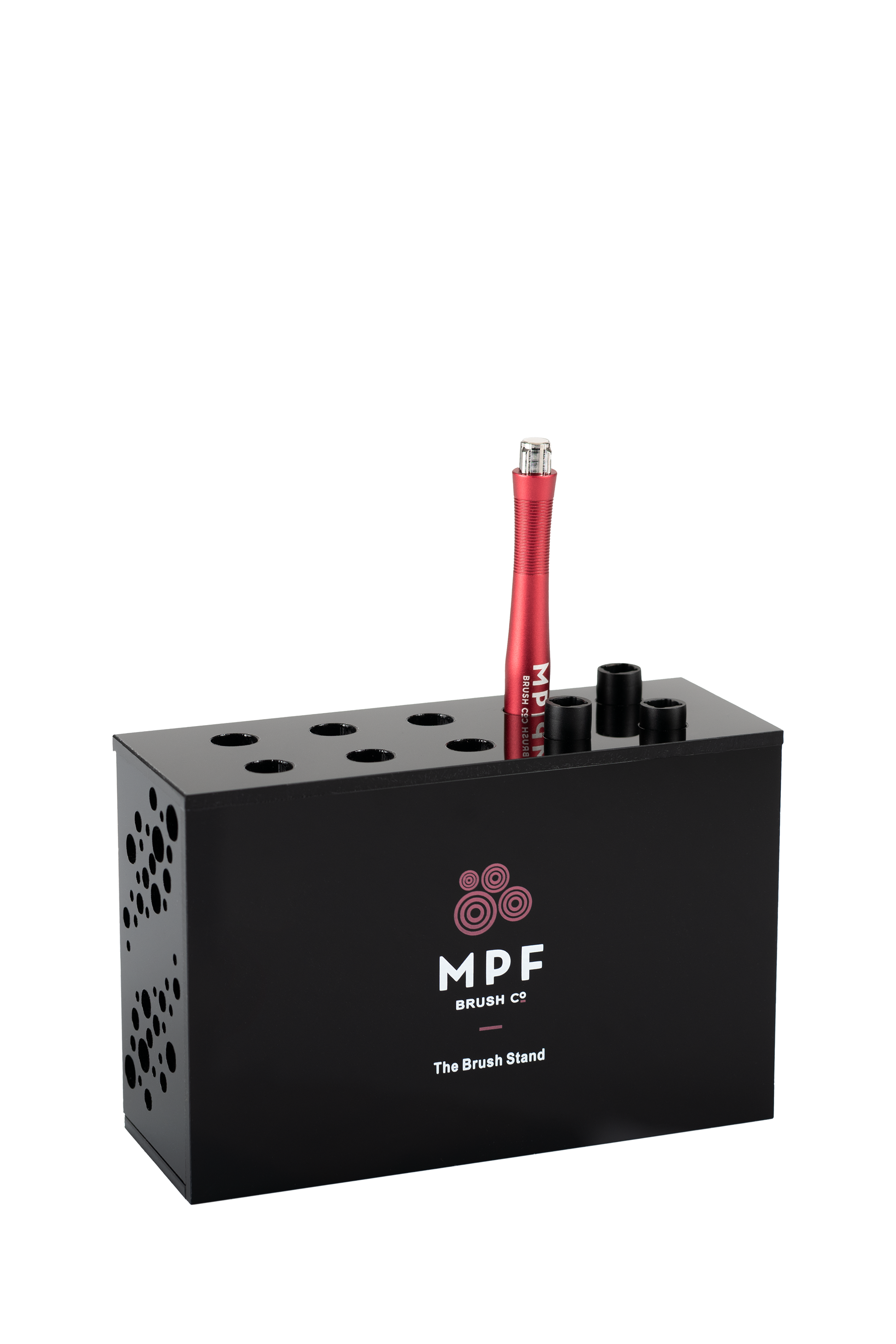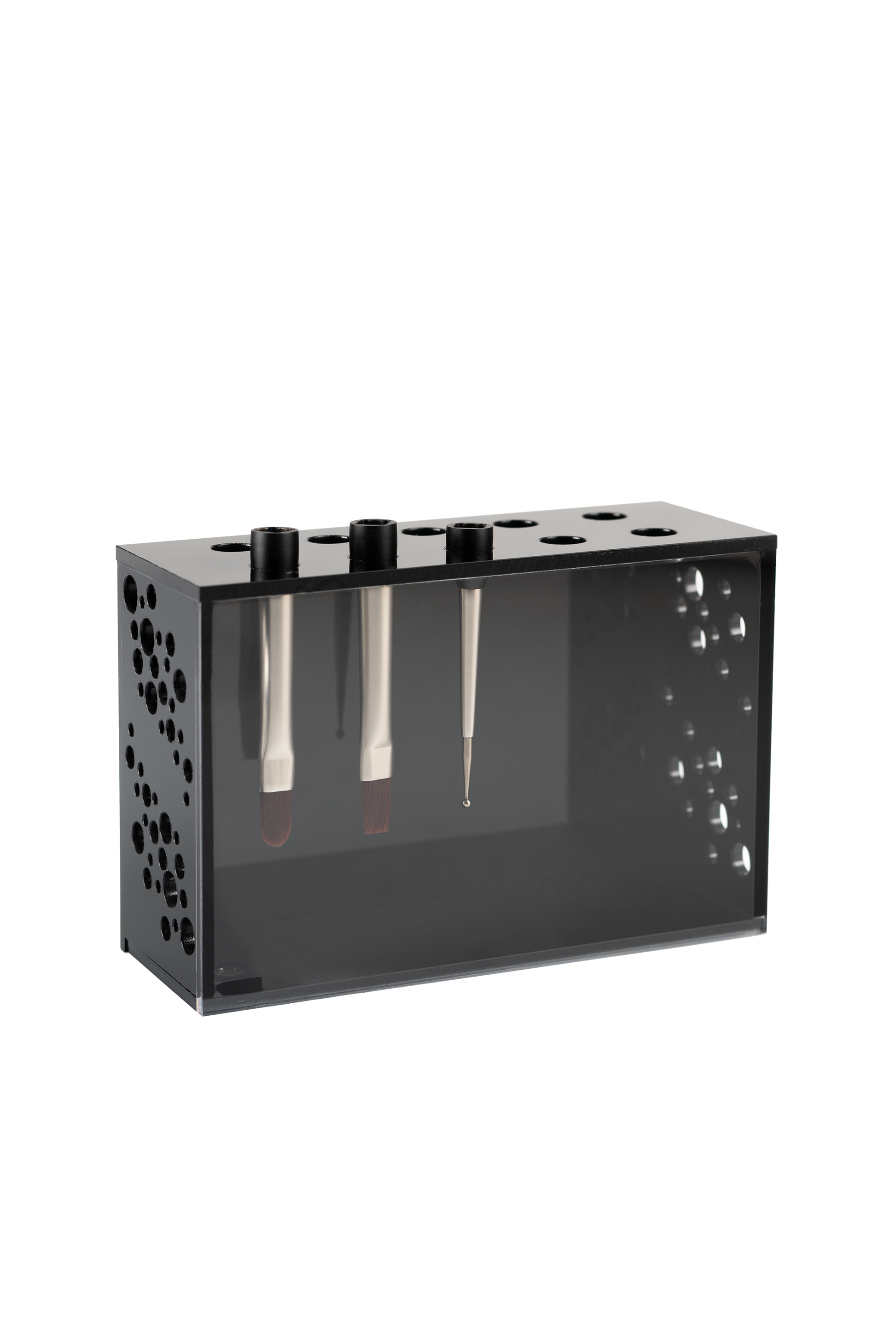 Introducing the MPF Nail Brush Stand, a sleek and innovative solution for nail technicians seeking superior organization and functionality. Crafted with precision and coated in a special black color it ensures maximum UV protection. This stand features ten compartments for all your brushes and tips.